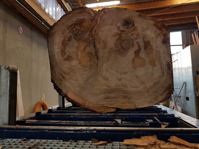 Die Weiterverarbeitung des Rundholzes erfolgt auf eigenen Blockbandsägewerken. Stämme bis zu 140 cm x 160 cm und einer Länge von bis zu 8,40 m können problemlos aufgeschnitten werden. Die Schnittqualität entspricht "fast wie gehobelt". Das durchgängig dünnste sägbare Brett beträgt 2 mm.